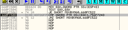 Как видим, здесь находится адрес начала вствки, когда мы дойдёт до JMP, то будет совершён переход по нему.