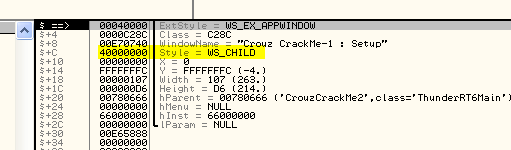Видим, что изменили ESP+C на 40000000, то есть на стиль WS_CHILD, как и хотели.