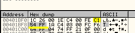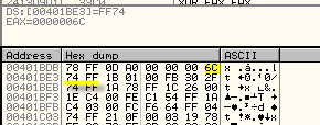 Как можно предположить из FE в 401bfg6, условный переход срабатывает и минут JMP, хе-хе.