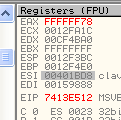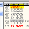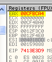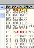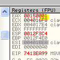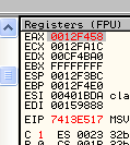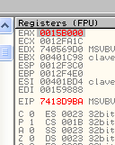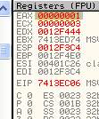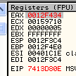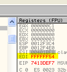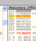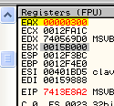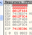 Всё остальное осталось таким же, не считая изменений в стеке и того, что ECX возвратил 0, вероятно для того, чтобы отметить, что процесс был завершён.