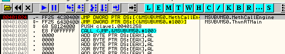 Хорошо, установим BP прямо на JMP, который является прямым переходом к функции MethCallEngine,