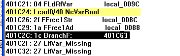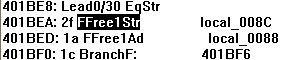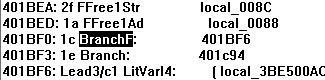 Это означает, что это и есть сравнение, к тому же прямо внизу видим несколько Branch’ей, которые совершают переход в зависимости от того, окошко с каким сообщением надо показать, а потом идёт освобождение строк и использованных значений.