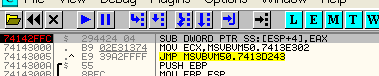 Останавливаемся на JMP, который начинает истинную часть P-CODE.