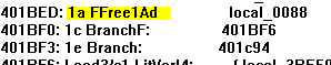 401BD0: 04 FLdRfVar local_008CНа следующей строке значение, считанное из параметров опкода, суммируется с EBP.