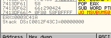 Параметр в моём случае – это 0300, и он указывает смещение в таблице дескрипторов элементов данных. Хм, видим, что доходим до косвенного JMP, посмотрим, совпадёт ли это с тем, что говорится.