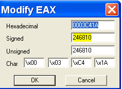 Посмотрим в OllyDbg, чему равно это число в десятеричной системе.