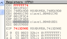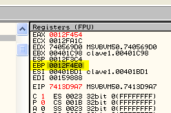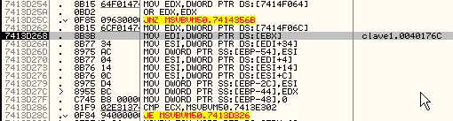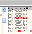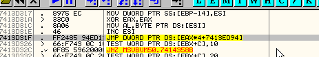 Но только в одном из них происходит чтение содержимого ESI, в котором находится адрес, указывающий на вышеуказанный байт. Это место мы быстро находим после нескольких остановок (на моей машине их было точно 10).