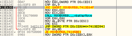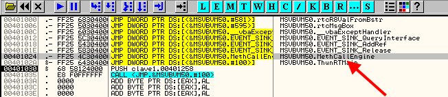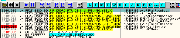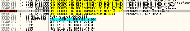 1e делает Безусловный переход1e означает условный переход (похоже, Рикардо не смог определиться, какой же переход он имел в виду – условный или безусловный? – прим. пер.). Он выполняется в DLL Visual Basic’а, то есть, то есть она считывает эти значения из секции кода, и они указывают DLL, что нужно сделать. Таким образом, никакого выполнения кода в соответствующей секции не происходит, только считываются из неё значения.
