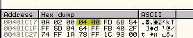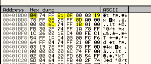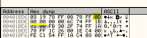 То есть первый байт, который будет прочтён – это 04, находящийся по адресу 401BD0. Он находится не очень далеко отсюда, так что установим на него BPM ON ACCESS.