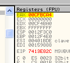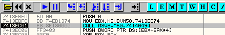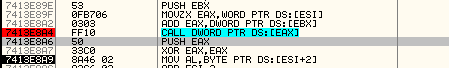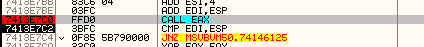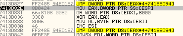 Дальше у нас вызов по адресу, где читается данная таблица, и как видим, содержимое EAX равно: