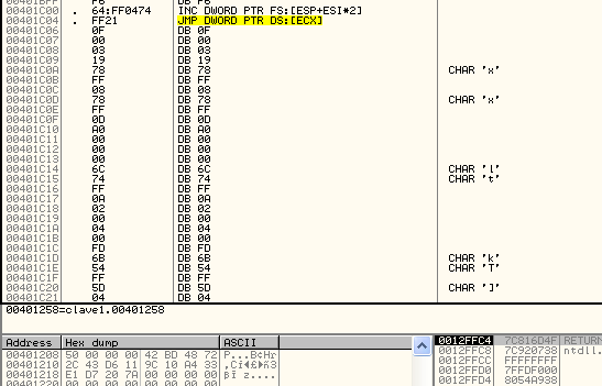 В следующей части мы рассмотрим крэкми “clave 2”, используя тот же метод. Мне бы хотелось, чтобы вы попробовали самостоятельно его сделать, но если не получится, то в следующей части вы сможете прочитать решение этого крэкми. © Рикардо Нарваха, пер. Aquila