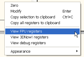 Который был загружен в St0, являющаяся верхним элементом стека плавающей запятой. Мы не говорили об этом раньше, но ничего. Находятся эти элементы под регистрами, если у вас они не отображаются, то нужно использовать специальную опцию. Нажимаем правую кнопку мыши.