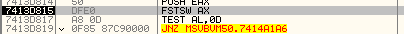 В куске кода, видим “XOR EAX, EAX”, завершающий выполнение опкода, а чуть выше – условный переход. Посмотрим, что он делает.