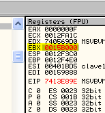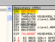Рассмотрим первый крэкми под названием clave1, в котором необходимо найти серийный номер. Этот крэкми мы позаимствовали у нашего друга JB DUC’а, написавшего очень хорошие статьи по данной тематике.