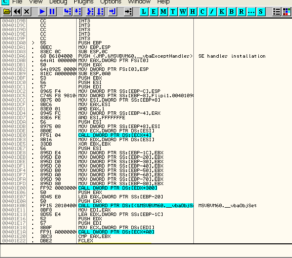 Очевидно, что большая часть исследования P-CODE проводится с помощью прекрасного отладчика WKT. Если хотите почитать туториалы с его применением, то поищите те, что были написаны JB DUC’ом, а также в «Новом курсе» от CracksLatinos также есть превосходные статьи о P-CODE. Здесь мы будем использовать OllyDbg и EXDEC, который нам поможет видеть имена опкодов, так как Билл Гейтс не предоставил нам их список, хе.