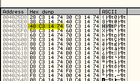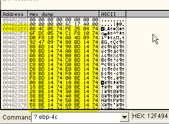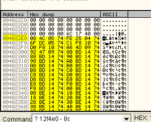 Видим, что здесь находится указатель на 4022e8, а если посмотрим в DUMP, то увидим: