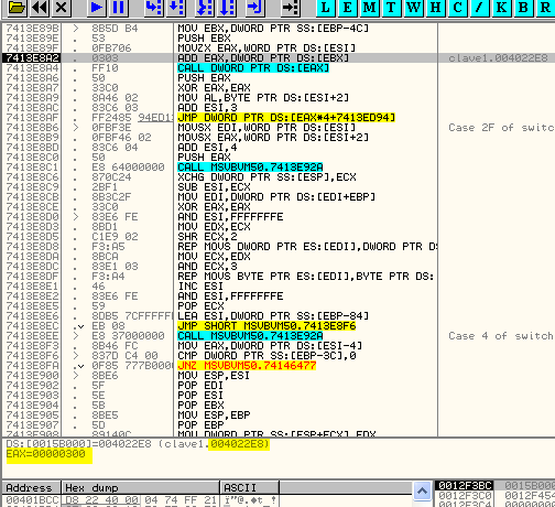 Таким образом, прибавив к началу таблицы 300, получим в EAX значение 4025e8.