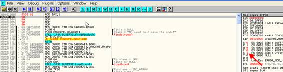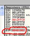 Видимо, что теперь в регистре нужное значение. OllyDbg выделяет изменённые значения красным цветом.