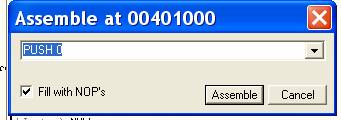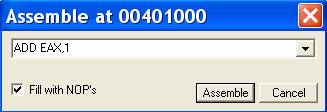 После нажатия на кнопку “ASSEMBLE” увидим, что инструкция по адресу 401000 изменится на ту, которая была введена.