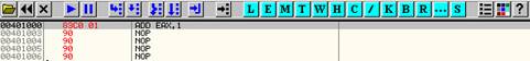 ADD EAX, 1, как мы узнаем, когда будут перечисляться и объясняться инструкции, прибавляет к EAX число 1 и сохраняет в этом же регистре полученное значение.