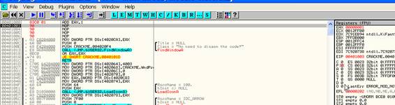 Рассмотрим пример работы с регистрами, чтобы немного попрактиковаться в OllyDbg.