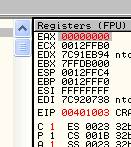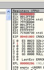 Видим в листинге, что при загрузке крэкми адресом первой выполняемой инструкции является 401000, и очевидно, что именно это значение и содержится в EIP.