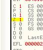 Сейчас у нас в EAX содержится значения 00000000, а флаг “P” равен 1 (как результат выполнения предыдущей инструкции), посмотрим, что случится, когда прибавим к EAX 1.