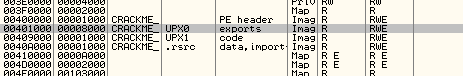 Как видим, они разные. В “CRACKME UPX” точка входа заменена на 409bf0, где будет начинаться выполнение распаковщика, а если пойдём посмотрим, что находится в 401000, то не найдём ни следа изначального кода.
