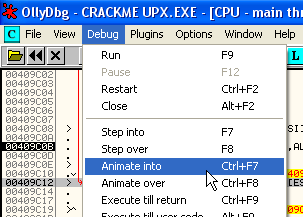 Рестартуем “CRACKME UPX”.