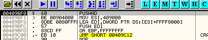 Как видим, первый шаг – это прибытие в OEP, для чего открываем крэкми в OllyDbg.