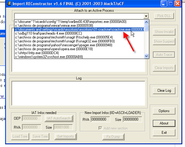 Ок, как видим, нужно починить IAT, чтобы файл мог работать на любой машине, а не только на нашей, для чего используем IMPORT RECONSTRUCTOR, конечно, не закрывая OllyDbg с загруженным крэкми CC, остановленным на OEP, так как IMP REC будет работать, используя его.