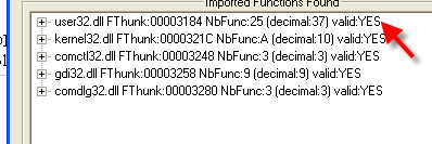 Видим, что IMP REC, чья задача установить, какие API-функции относятся к каждому элементу IAT, и кроме их нахождения, он сообщает, правильны ли они, отмечая их словом YES. В случае, если элементы не ведут напрямую на API-функцию, как это бывает с некоторыми упаковщиками, он показывает NO, и в этом случае необходимо установить, куда этот элемент ведёт на самом деле. После того, как он приведён в порядок, IMP REC распознает его как корректный элемент и скажет «YES», и как только всё станет «YES», мы можем починить дамп.