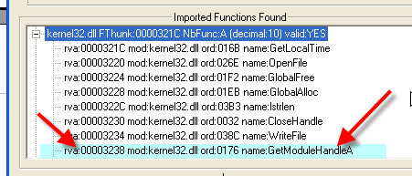 Тут у нас все элементы, к которым относятся API-функции, и если есть желание, то можно поместить первую из них (а это GetModuleHandleA) в IAT.