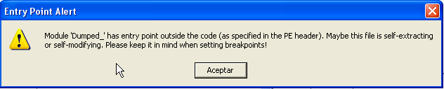 Если откроем DUMPED_exe в OllyDbg.
