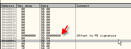 Видим, что сигнатура PE начинается в 80, идём туда (400080).