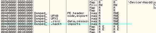 Если посмотрим секции сдампленного файла, то увидим, что для его починки IMP REC добавил новую секцию, названную mackt, где находится новая IT. Проверим её. В том же заголовки в режиме SPECIAL посмотрим указатель на IT.