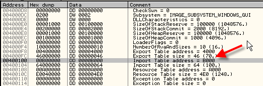 В этом элементе IAT в исполняемом файле есть значение B084, которое соответствует 40B084, где должно находится имя API-функции, чей адрес будет помещён в этот элемент.