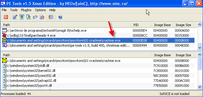 Открываем PE-TOOLS без закрытия OllyDbg, где мы по-прежнему стоим на OEP.