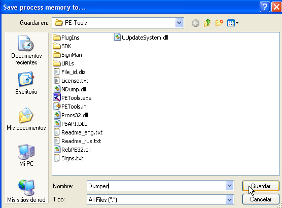 Ок, сдампили, теперь переходим к починке IAT. Закрываем PE TOOLS, видим, что сдампленный файл сохранился в директорию PE TOOLS, так что ищем его и копируем в директорию, где находится упакованный UPX’ом крэкми CrueHead’а.