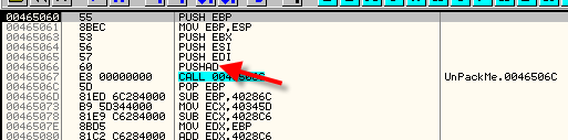 Сработает ли PUSHAD? Попробуем этот метод. С помощью трассировки идём досюда и проходим PUSHAD с помощью F7.