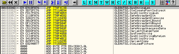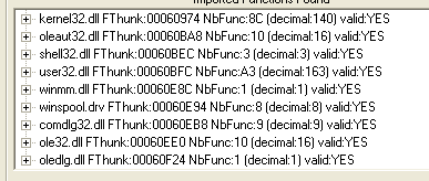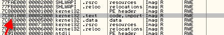 Так, эта часть IAT выглядит как правильная, так как если посмотрим на карту памяти, куда ведут элементы, они все относятся к 7C8XXXXX или нулям, и эти адреса располагаются в секции кода kernel32.dll, то есть данные элементы являются правильными.