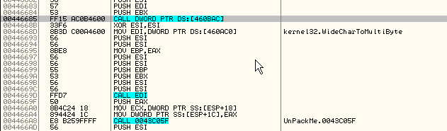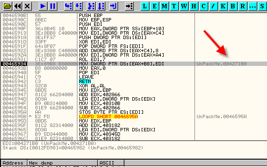 Продолжаем, чтобы узнать, определиться ли сделанная нами забивка, и оказываемся в OEP.