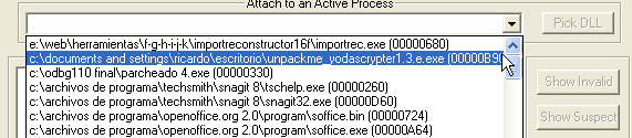 Вот процесс, остановленный на OEP; выбираем его в выпадающем меню.