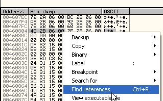 Здесь видим последний элементы IAT, находящийся по адресу 460f24, и если ниже поищем ссылки, то не найдём ни для какого элемента, так что в качестве конца IAT задаём 460F28. Теперь нужно найти её размер.