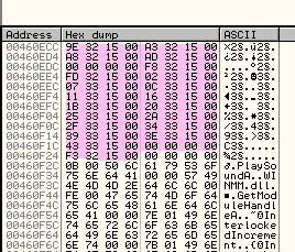 Конец IAT находим таким же образом, спускаемся ниже, чтобы найти, где кончается закономерность, проявляющаяся в том, что элементы ведут или в секции кода DLL или в секцию 15XXXX.