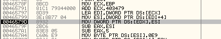 Видим, что всего лишь несколькими строками ниже ESI принимает плохое значение, и готовится к загрузке его в элемент.