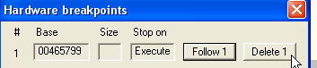 Повторяем процесс с хорошим элементом, связанным с GetVersion и находящимся несколько строки ниже OEP. Используем его и установим HBP ON WRITE.