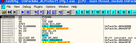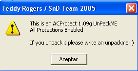 Ок, теперь мы перейдём к более сложным упаковщикам и увидим, что используемые методы могут быть очень разными в зависимости от случая, поэтому у нас должен быть большой запас различных трюков. В этот раз нас будет занимать ACPROTECT 1.09, распакуй-меня со всякого рода защитами.