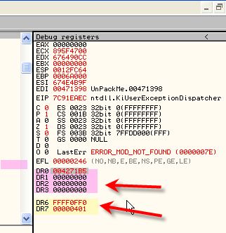 Это знаменитые отладочные регистры от DR0 до DR7. DR0 по DR3 соответствуют аппаратным точкам останова.