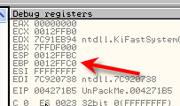 Кроме того другой регистр, который вначале может иметь случайное значение, это EBP, чьё содержимое изменяется с помощью MOV EBP, ESP.
